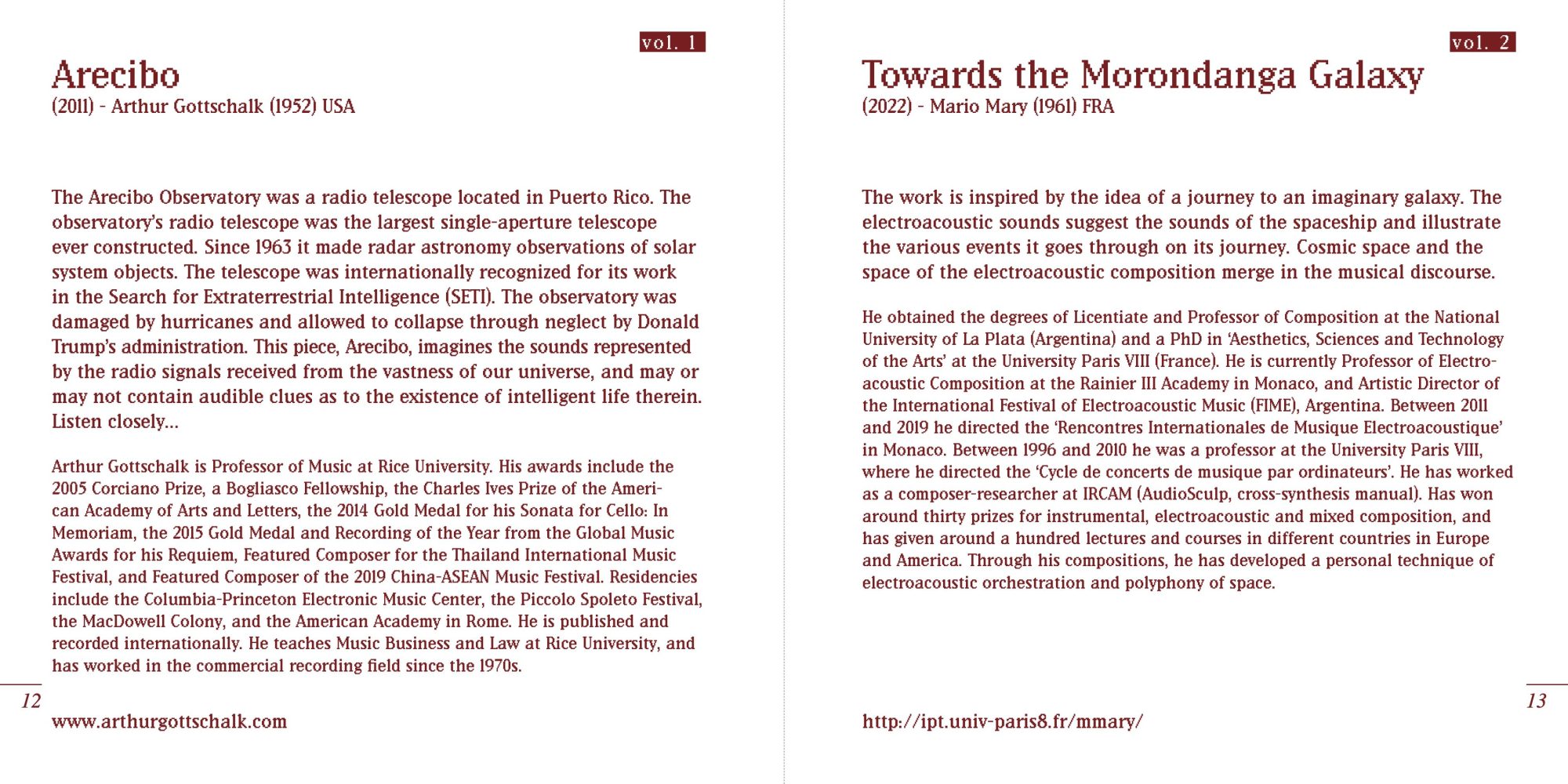 The work is inspired by the idea of a journey to an imaginary galaxy. The electroacoustic sounds suggest the sounds of the spaceship and illustrate the various events it goes through on its journey. Cosmic space and the space of the electroacoustic composition merge in the musical discourse.