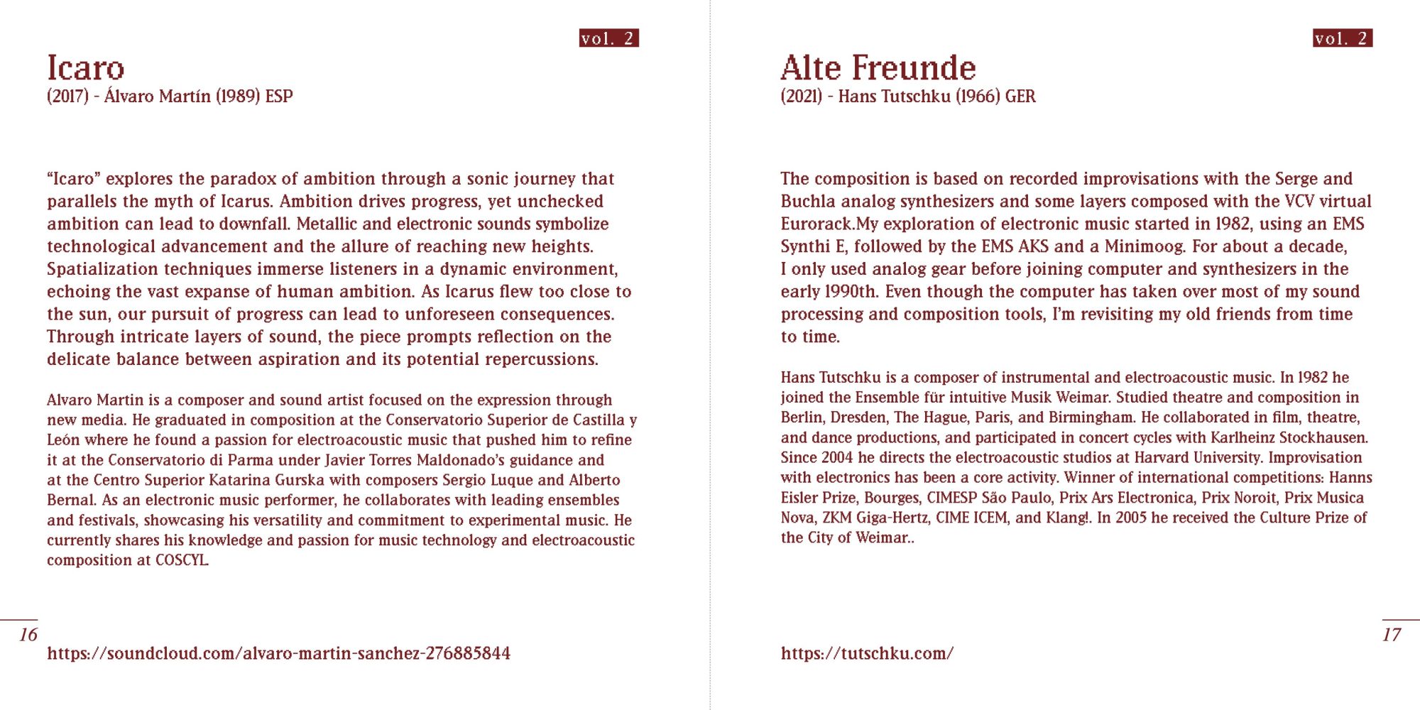 Alvaro Martin is a composer and sound artist focused on the expression through new media. He graduated in composition at the Conservatorio Superior de Castilla y León where he found a passion for electroacoustic music that pushed him to refine it at the Conservatorio di Parma under Javier Torres Maldonado’s guidance and at the Centro Superior Katarina Gurska with composers Sergio Luque and Alberto Bernal. As an electronic music performer, he collaborates with leading ensembles and festivals, showcasing his versatility and commitment to experimental music. He currently shares his knowledge and passion for music technology and electroacoustic composition at COSCYL. https://soundcloud.com/alvaro-martin-sanchez-276885844