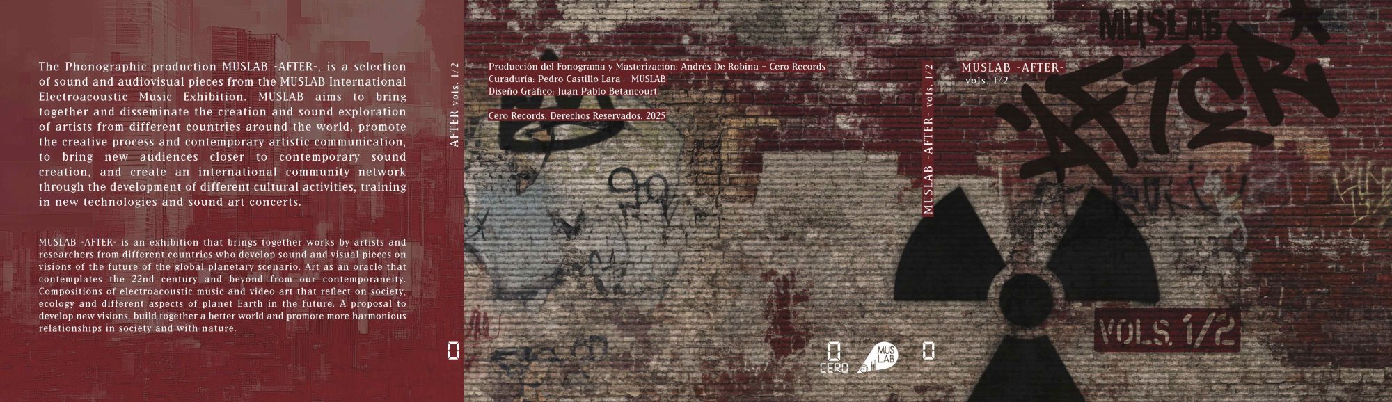 The Phonographic production MUSLAB -AFTER-, is a selection of sound and audiovisual pieces from the MUSLAB International Electroacoustic Music Exhibition. MUSLAB aims to bring together and disseminate the creation and sound exploration of artists from different countries around the world, promote the creative process and contemporary artistic communication, to bring new audiences closer to contemporary sound creation, and create an international community network through the development of different cultural activities, training in new technologies and sound art concerts.