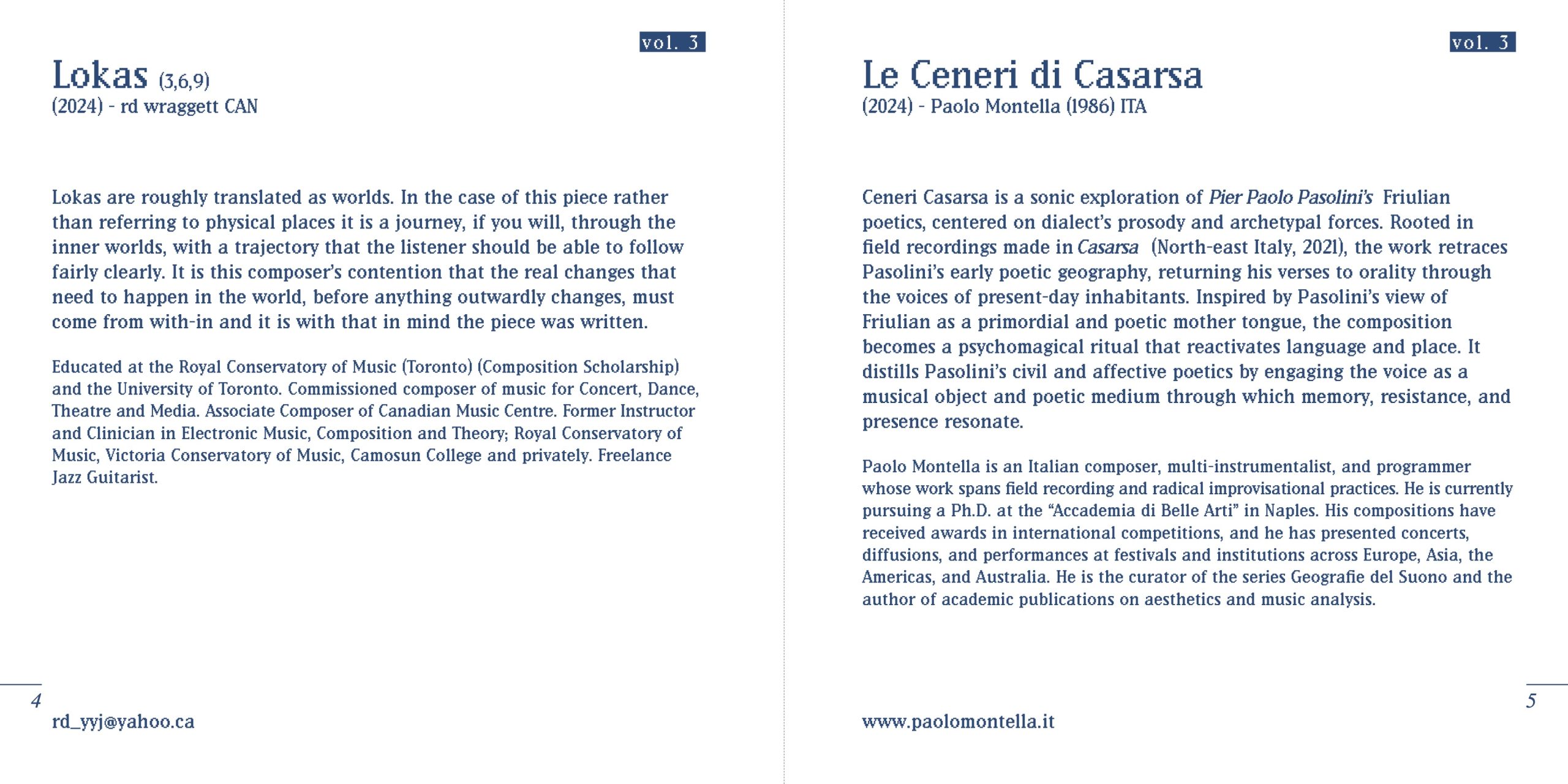 Paolo Montella is an Italian composer, multi-instrumentalist, and programmer whose work spans field recording and radical improvisational practices. He is currently pursuing a Ph.D. at the “Accademia di Belle Arti” in Naples. His compositions have received awards in international competitions, and he has presented concerts, diffusions, and performances at festivals and institutions across Europe, Asia, the Americas, and Australia. He is the curator of the series Geografie del Suono and the author of academic publications on aesthetics and music analysis. www.paolomontella.it